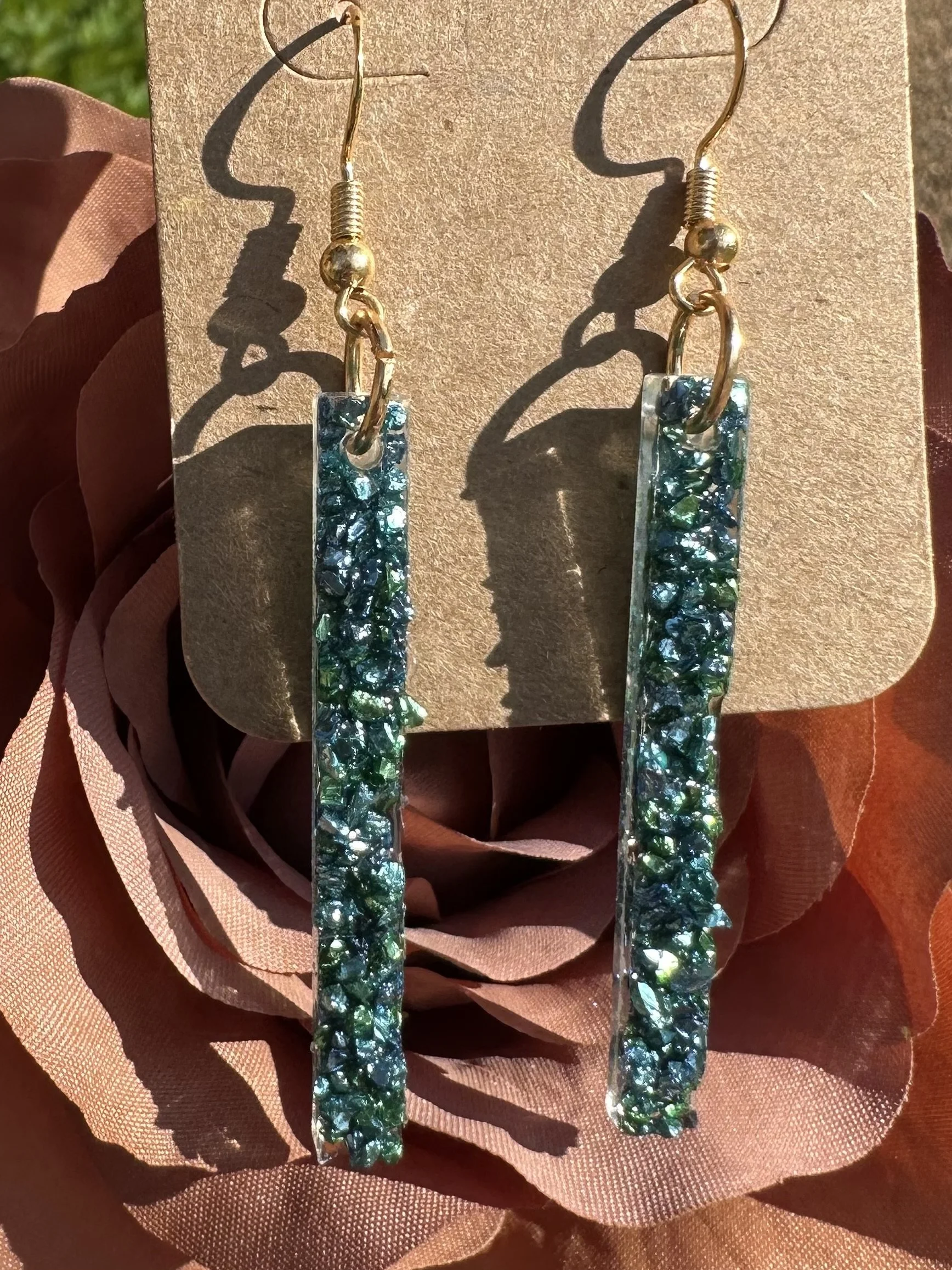 In honor of Charlie Kirk, this elegant patriotic earring is created with resin and broken glass (each piece is hand placed) to represent the flag of United States of America and the Christian faith in which it was found upon. The triangle shape represents to Trinity ( The Father, the Son, and the Holy Spirit). Our present sufferings here on Earth shall lead to future glory in eternity.